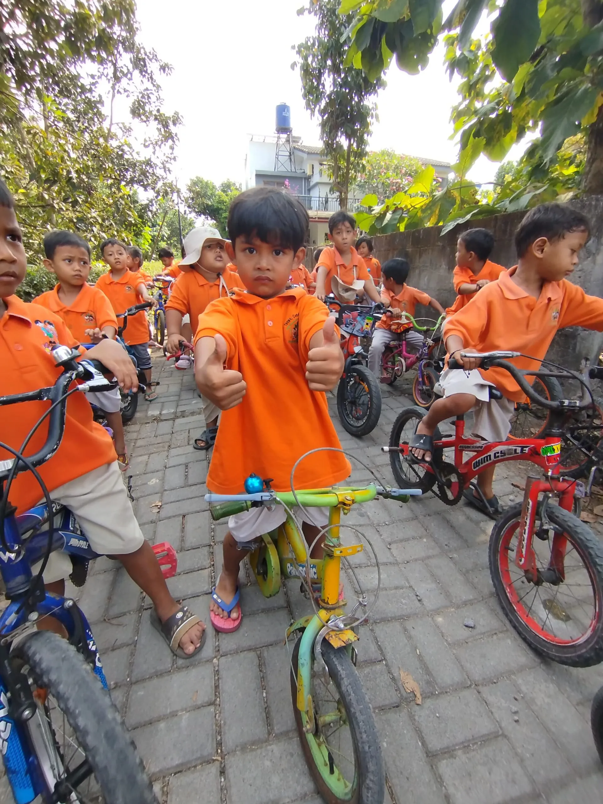 Pagi hari yang cerah teman-teman di TK Rumahku tumbuh bersepeda berkeliling bereksplorasi mengitari lingkungan sekitar sekolah. Sepeda dibawa dari rumah masing-masing lalu sebelum mulai berkeliling dibuat kesepakatan dulu tentang aturan yang harus dipatuhi oleh semua peserrta. Setelah itu bersama-sama bersepeda berkeliling dengan tertib…wah seru sekali !.