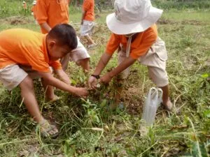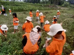 Teman-teman kecil di sekolah rumahku tumbuh sudah tak sabar untuk panen kacang tanah. Pagi hari semua sudah bersiap-siap dengan perlengkapan yang dibawa, murid dan guru tak lupa memakai topi dan membawa bekal air putih. Kegiatan panen ini memberikan pengalaman agar anak dekat dengan alam, selain itu juga dapat melatih otot anak ketika mencabut tanaman kacang tanah. Mengajarkan anak untuk bekerja sama dengan teman, membantu teman yang kesulitan ketika mencabut tanaman kacang.