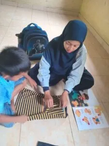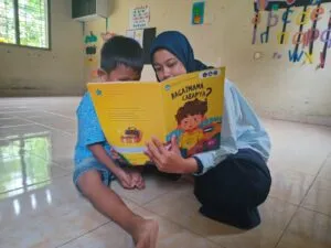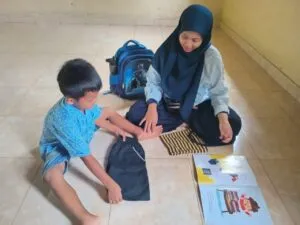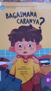 Kali ini anak-anak diajak belajar melipat baju dan celana. Sebelumnya perpustakaan sekolah rumahku tumbuh mendapatkan bantuan buku bacaan anak dari perpusnas. Buku-buku ini sangat bermanfaat untuk pembelajaran di kelas, salah satunya adalah buku yang berjudul Bgaimana Caranya? yang ditulis oleh Affifah Nada P.R dan ilustrasi oleh David Thio.