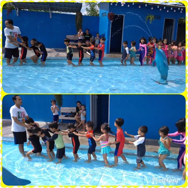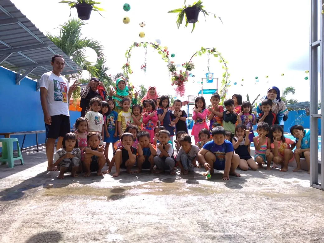 anak-anak tk rumahku tumbuh berteriak kegirangan ketika diberitahu bahwa mereka akan berenang…horee teriak anak-anak.