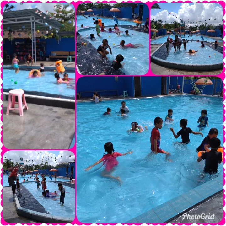 Waah…anak-anak sudah tak sabar lagi ingin nyemplung ke kolam renang, eiits…tunggu dulu ya kita pemanasan sedikit dipinggir kolam.