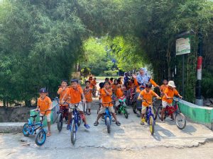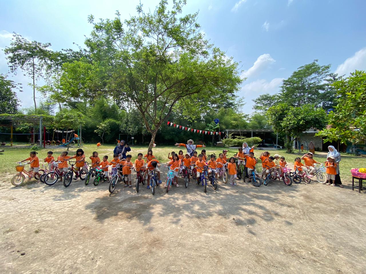 Bersepeda adalah salah satu kegiatan yang menyenangkan. Kali ini teman-teman dan guru di sekolah rumahku tumbuh melakukan aktivitas bersepeda mengelilingi lingkungan sekitar yaitu dusun Jomblang. Sepeda diantar oleh orang tua sehari sebelumnya, lalu keesokan hari anak-anak dengan gembira dapat bersepeda bersama-sama. Sebelum kegiatan bersepeda dimulai dibuat kesepakatan terlebih dahulu yaitu aturan yang harus di taati oleh anak-anak selama bersepeda.