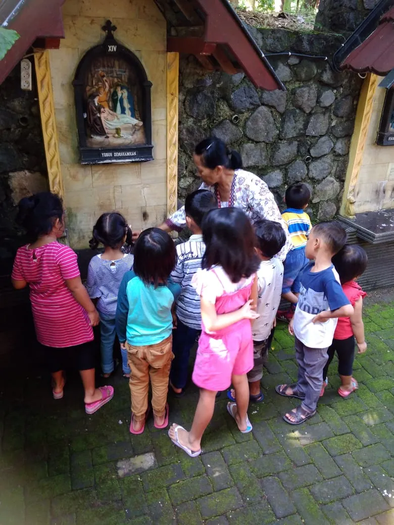 Dengan bu Etik sebagai guru pedamping dan 12 anak-anak dari TK rumahku tumbuh dan KB Melati rutin melakulan kegiatan ziarah ini setiap bulan Mei. Sedangkan untuk kegiatan takwa di sekolah rutin setiap hari jumat.