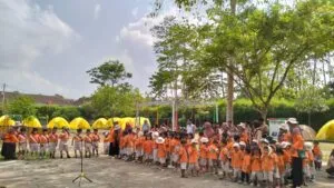 sabtu pagi semua murid mendapatkan “Pin Keberanian” dan disematkan langsung oleh ibu Septiyati Purwandari M.Pd sebagai ketua yayasan.