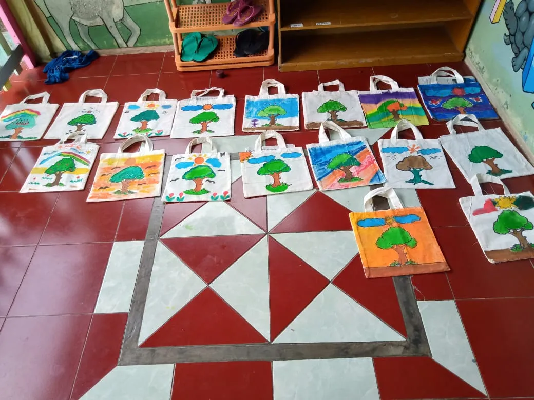 Kegiatan yang dipandu oleh pengelola TbM dan beberapa mahasiswa psikologi ini diantaranya adalah menyaksikan film pendek tentang cinta lingkungan, membaca buku dengan suara nyaring/reading aloud, menulis cerita, melukis botol bekas dan Tote bag.