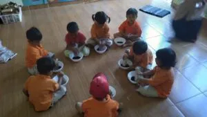 Di sekolah Rumahhku Tumbuh, salah satu kegiatan rutin yang dilakukan adalah makan bersama. Berdoa sebelum dan sesudah makan merupakan kebiasaan yang ditanamkan. Tujuannya adalah agar anak memiliki kebiasaan yang baik serta memahami konsep syukur atas rezeki yang di terima dari Tuhan.