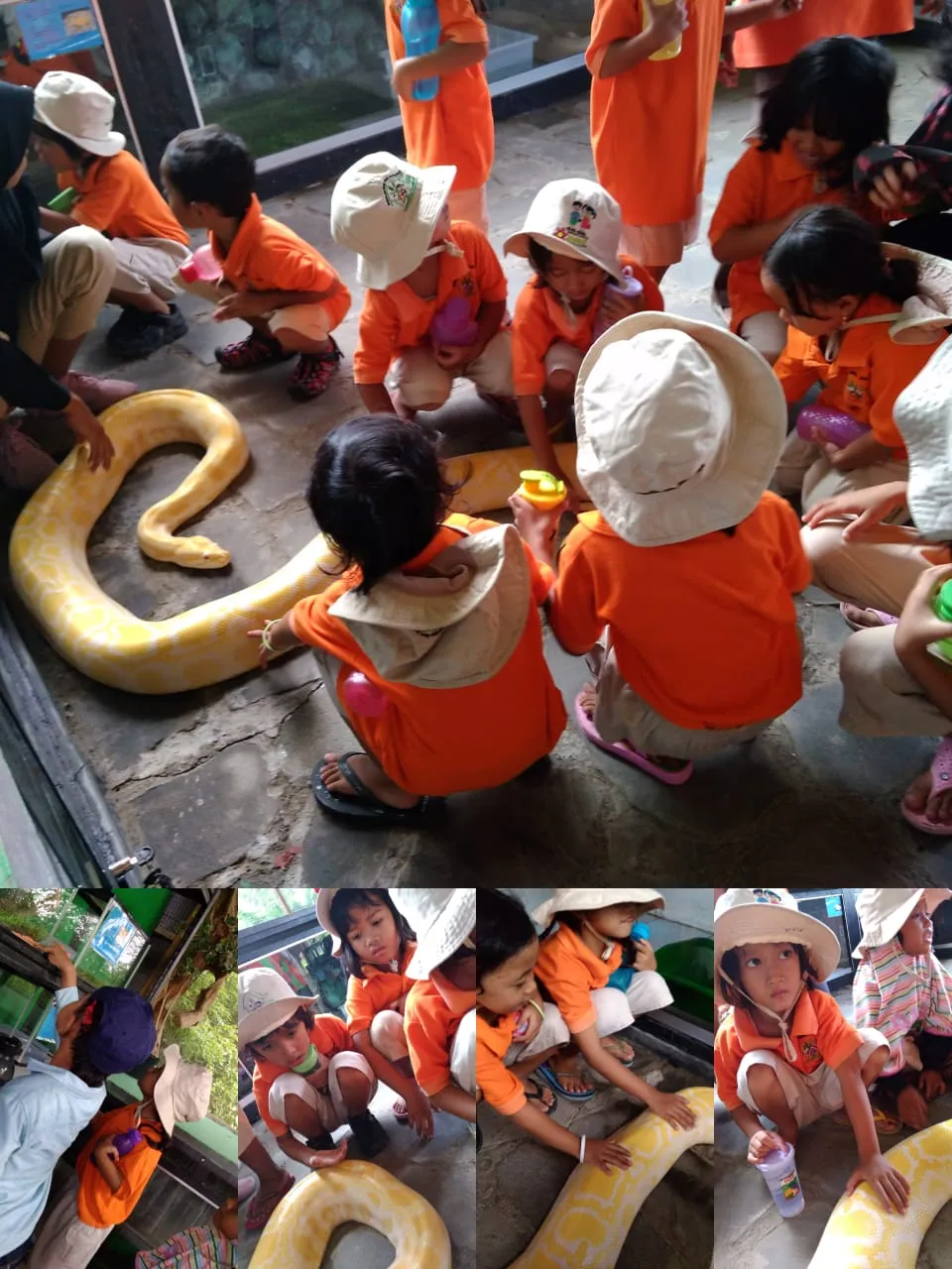 Kali ini anak-anak TK rumahkutumbuh melakukan minitrip ke minizoo yang ada di sleman. Mereka berani memegang ular lho..ular jenis phyton ini dipanggilnya mas atau mbak yaa?begitu pertanyaan anak-anak yang sangat antusias ketika melihat dan memegang ular jenis phyton albino ini, ternyata namanya mas Allen ..wah keren ya namanya.