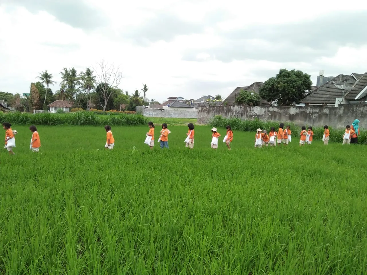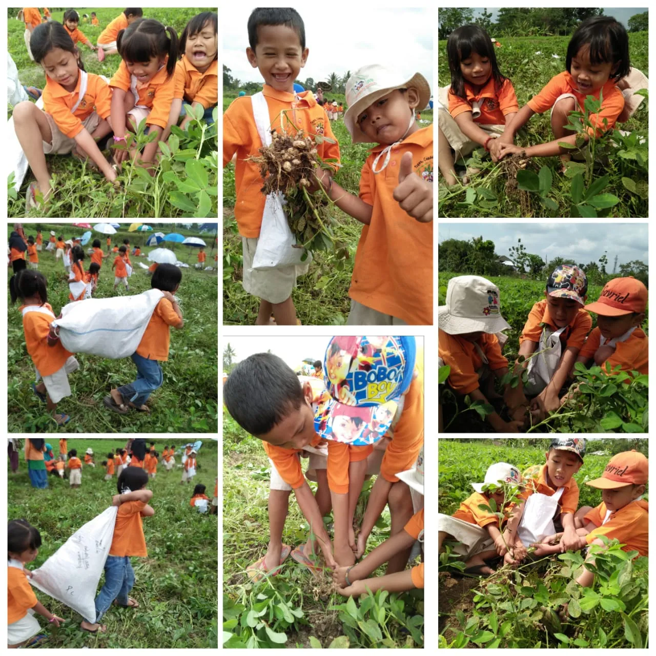 Kami berjalan kaki menuju kebun kacang karena letaknya tidak jauh dari sekolah kami. Murid-murid TK rumahku tumbuh dan KB melati tak lupa membawa bekal buah dan air putih..juga topi berpetualang agar tak kepanasan.
