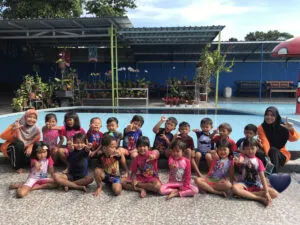 Di bulan Febuari kegiatan seru dan dinanti-nanti di sekolah rumahku tumbuh yaitu berenang…yeeeaaayy…senangnyaa. Seperti biasa sebelum memulai berenang anak-anak dan guru membuat kesepakatan terlebih dahulu, diantaranya saling sayang dan menjaga satu sama lain, berenang hanya di kolam khusus anak saja. Setelah itu senam pemanasan terlebih dahulu agar otot-otot tidak kaku lalu….. byuuuur..anak-anak menceburkan diri ke kolam renang…asyiik.